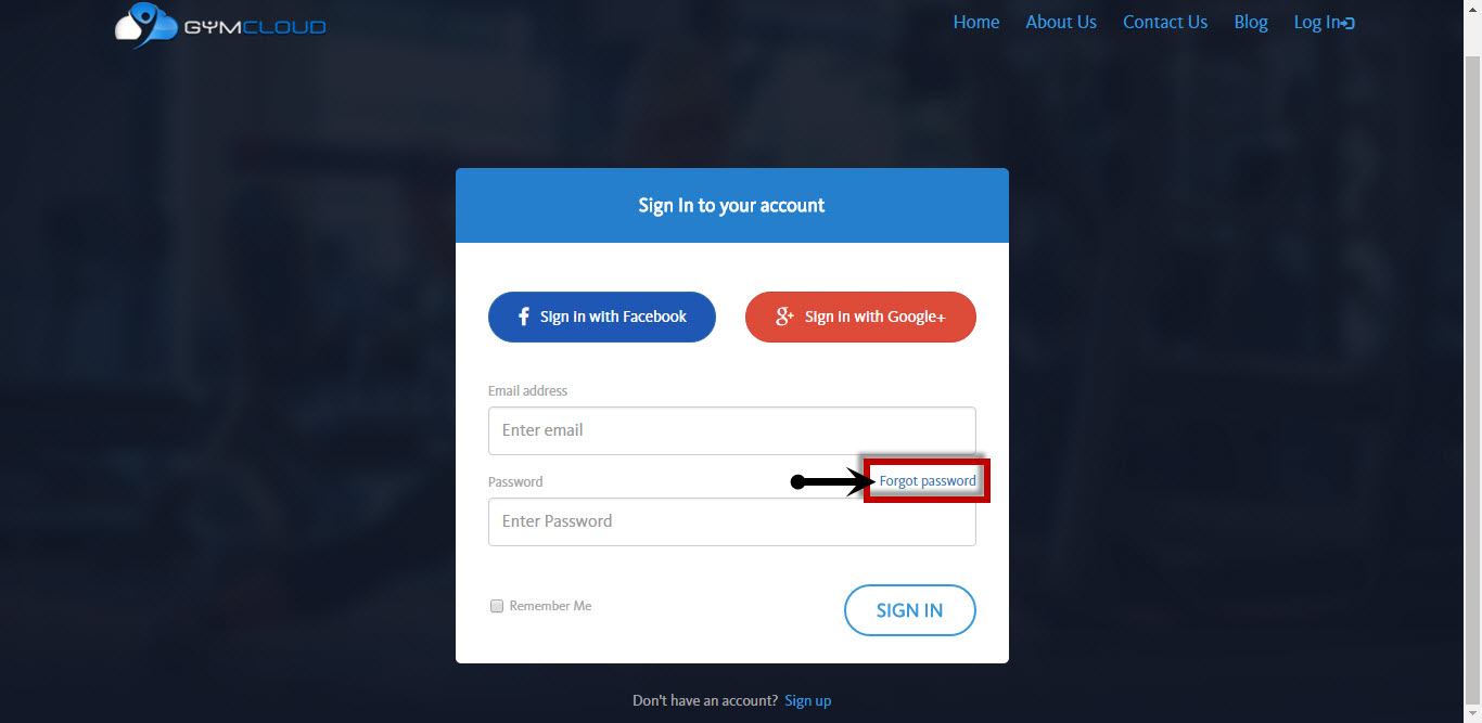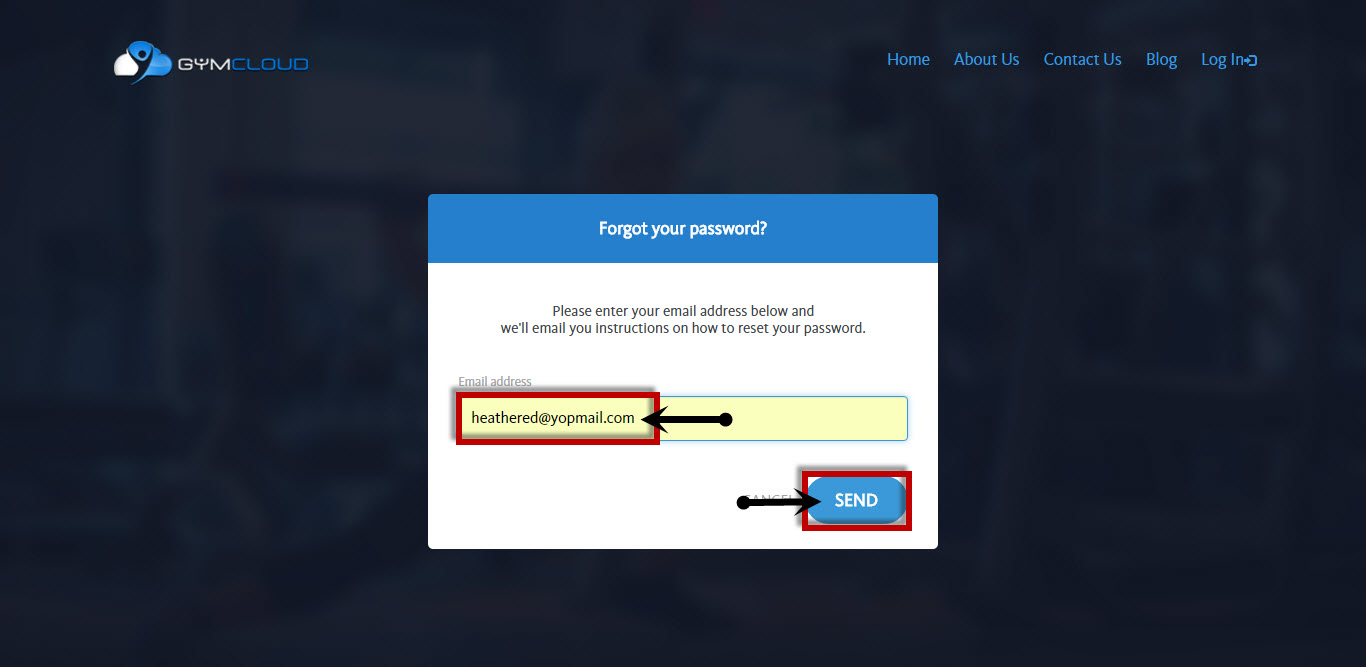 1. Go to the GymCloud login page (Here) and click the "Forgot Password" button, which can be found below the email address box.