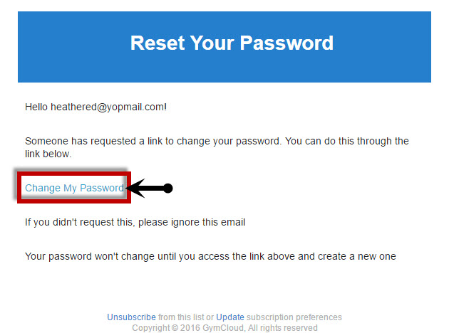 3. You will receive a "Reset your Password" email. Find the hyperlink "Change My Password" and click on it.