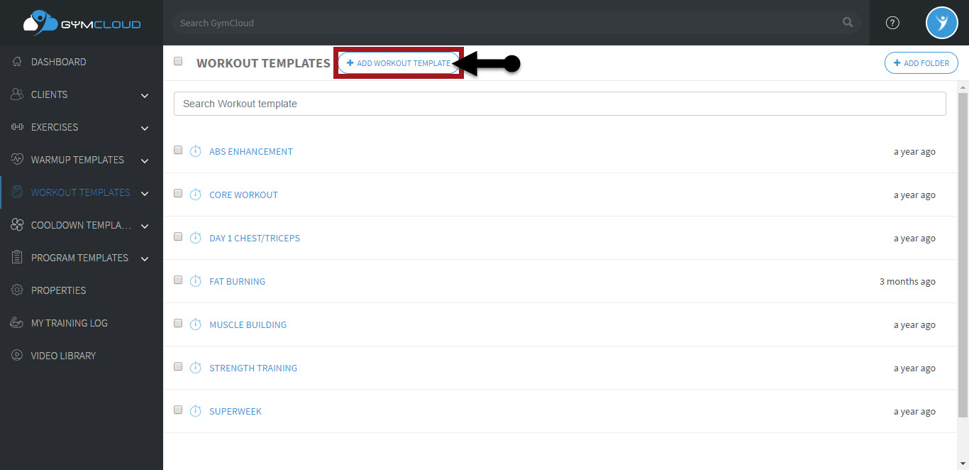 To add a new workout, open your preferred folder, and click the Add Workout Template button.