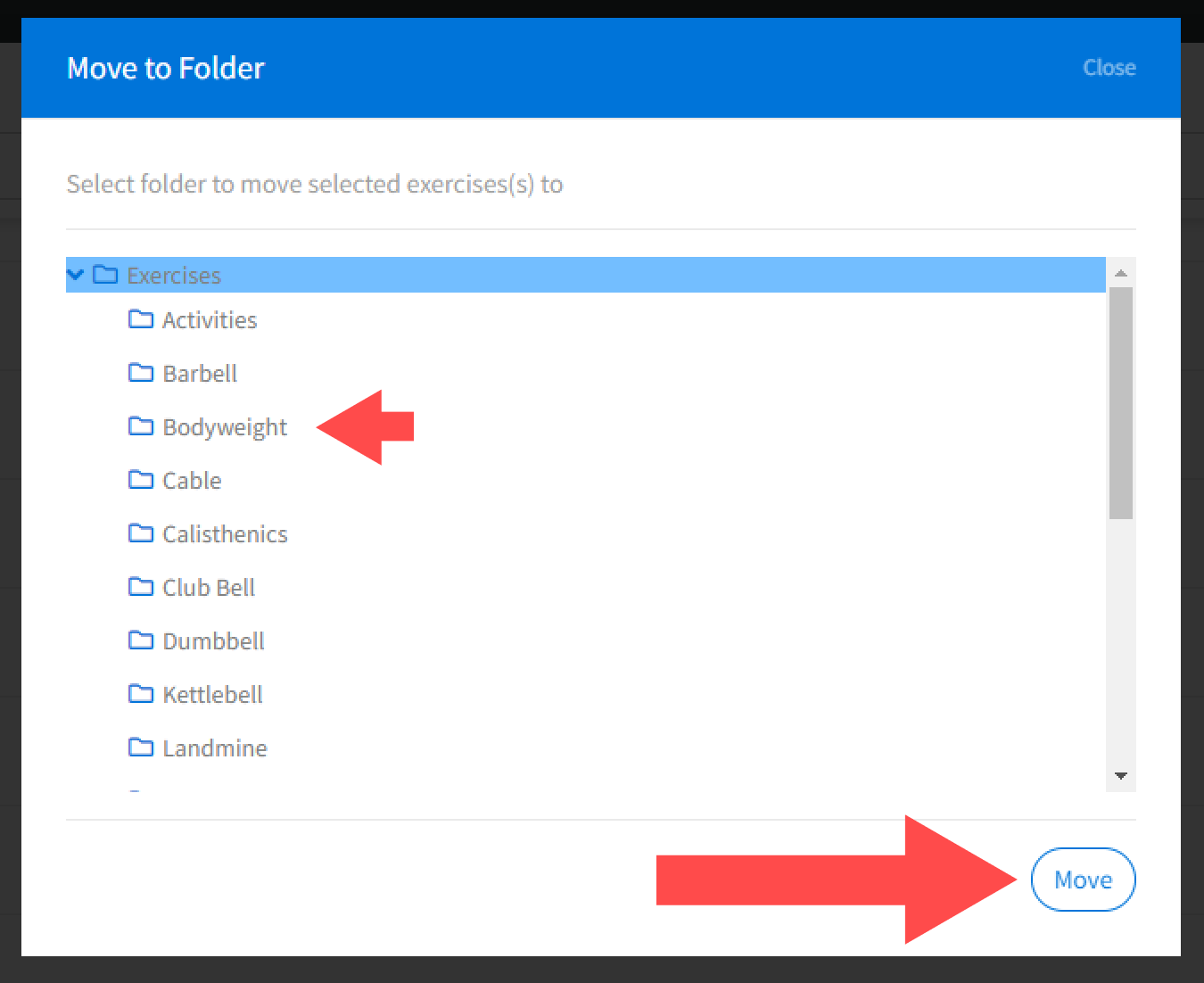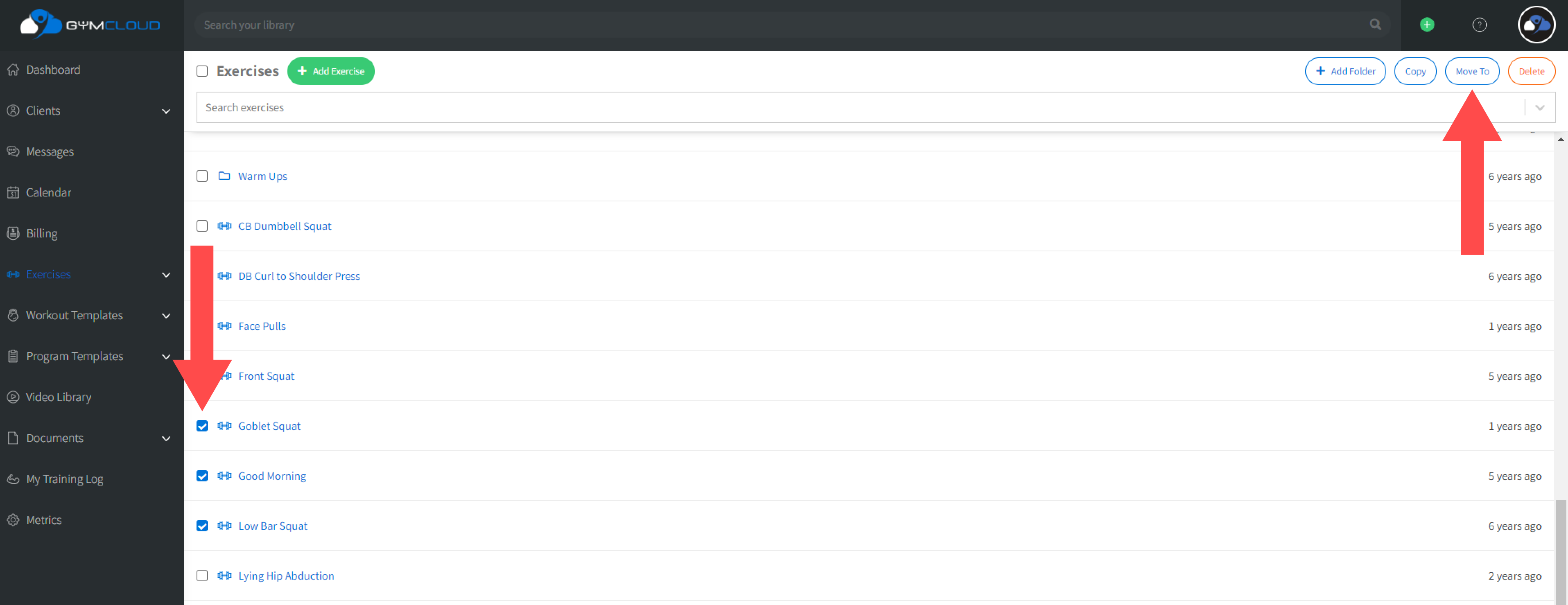 It can be useful to organize your library items into folders for easy access. This article will show you how to manage the Exercises section, but the steps for Workout and Program Templates are identical.