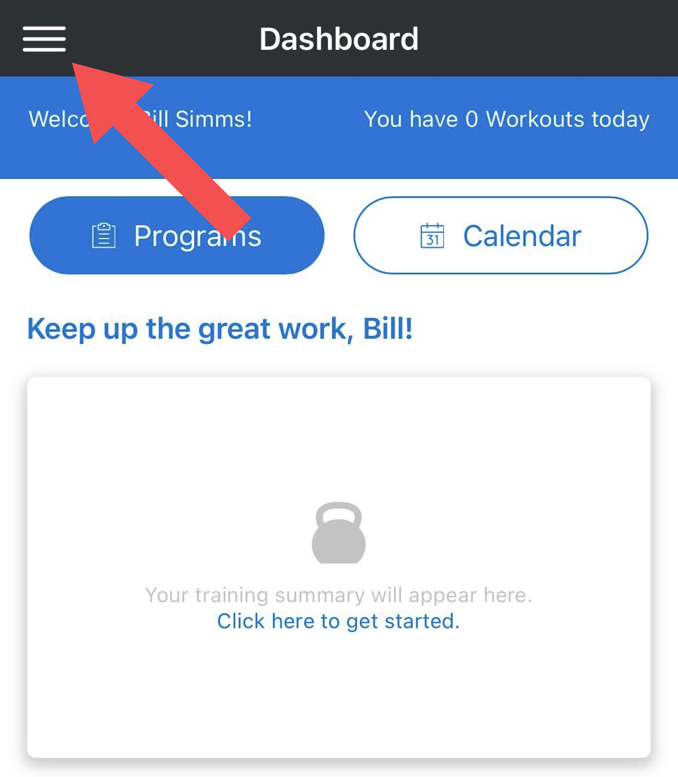 Programs and Workouts - View the workouts and programs assigned to you by your trainer. Once you've navigated to a specific workout, Schedule or Start it to begin entering results.